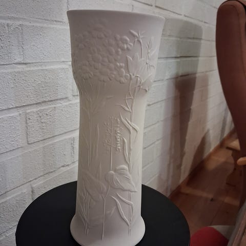 Korkeus 28 cm. Suuaukon halkaisija 11 cm. Valkoinen. Ehjä ja siisti. Vain nouto.