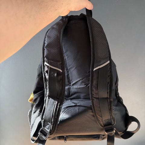 Rakenne: Repussa on suuri päälokero kiekoille, etutasku pienemmille tarvikkeille sekä pehmustetut olkahihnat kantomukavuuden lisäämiseksi.