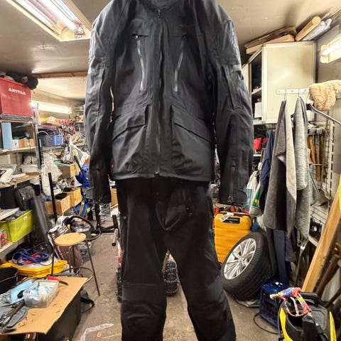 Halvarssonin ajoasu takki 54 ja housut 52.