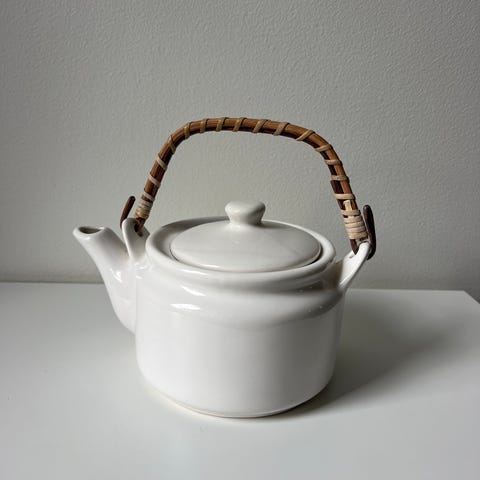 Teepannu, perussiisti. Muuten ehjä mutta kaulassa pieni halkeama. Ei haittaa käyttöä.