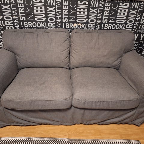 Myydään 2 vuotta vanha IKEA:n EKTORP 2:n istuttava sohva, Hakebo tummanharmaa.