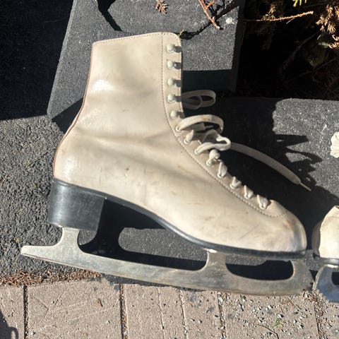 Nina taitoluistimet koko 41. Valkoiset nahkajäljitelmäiset luistimet, joissa on nauhakiinnitys ja korkea varsi nilkan tueksi. Terät soveltuvat yleiseen luisteluun. Koko 41 aikuiselle tai isommalle nuorelle.