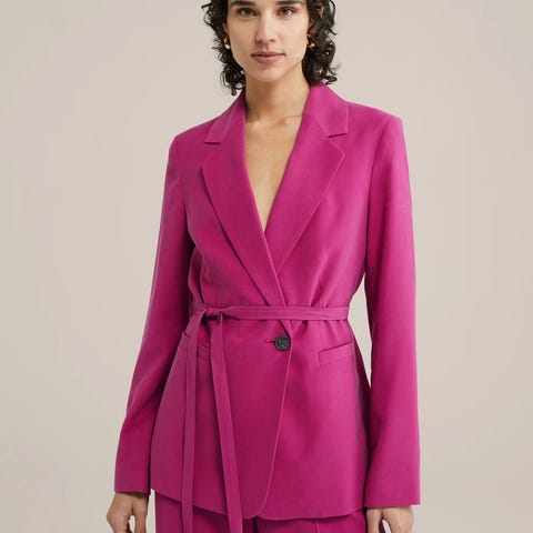 Vila naisten bleiseri, koko 44. Punainen, yksirivinen malli, jossa kauluskäänteet ja nappikiinnitys edessä. Edessä kaksi läppätaskua. Käyttämätön.