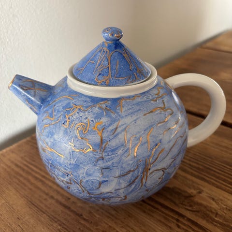 Myynnissä kaunis, jugend -tyylinen, antiikki teekannu.