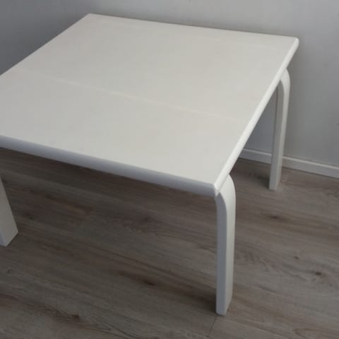 hyvässä kunnossa, hieman hutera jos heiluttaa pöytää, mutta ei haittaa mitenkään käyttöä ja kestää tavaroita päällä.