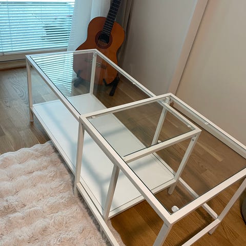 Hyväkuntoinen Ikean vittsjö-sohvapöytä, mitat kolmannessa kuvassa. Pöytiä voi käyttää yhdessä tai erikseen. Lasikannet. Hp 50€