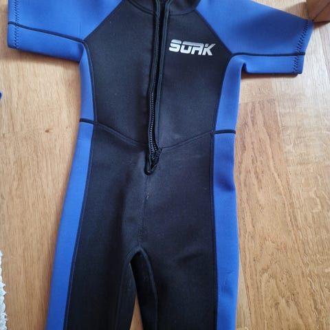 Vähänkäytetty märkäpuku lasten koko S vastaa noin 100 cm, uuden hinta noin 40 €