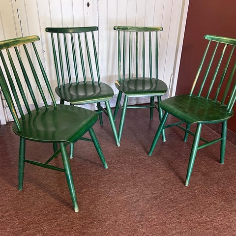 Istuimen pinta kulunut, muutoin ovat ehjät ja hyväkuntoiset. Tukevat istua ja istuma-asento on hyvä.