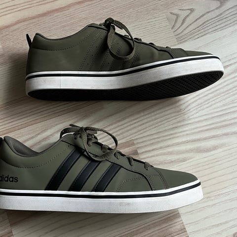 Adidas tennarit, koko 44. Väriltään mustat, valkoisella pohjalla ja sivuilla harmaat kolme raitaa. Nauhakiinnitys ja matalavartinen malli. Soveltuvat arkikäyttöön ja vapaa-aikaan. Käyttämätön uusi