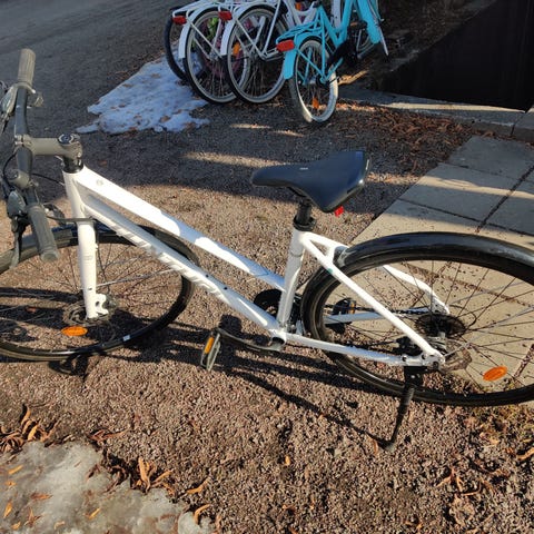 Naisille tarkoitettu maantiepyörä. Pyörässä on punainen runko, etukori ja takana tavarakori. Satula on musta ja ohjaustangossa on suorat kahvat. Soveltuu maantieajoon ja arkiseen liikkumiseen kaupungissa tai taajama-alueella.