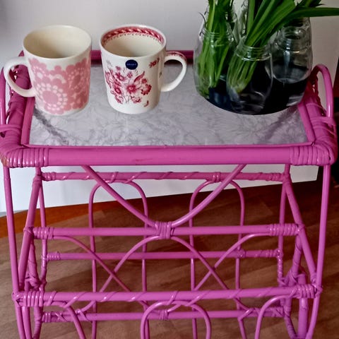 Hakusanat: puu paju köynnös, vintage boho, maalaishenkinen, tummanruskea, rottinki lehtitelinepöytä, puinen, sisustus, rottinki, rottinkinen, rustiikki, koristeellinen, punottu