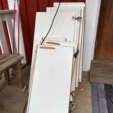 Toisetkin puustellin uudet kaapin ovet, näiden koko 39.5 x 101.5