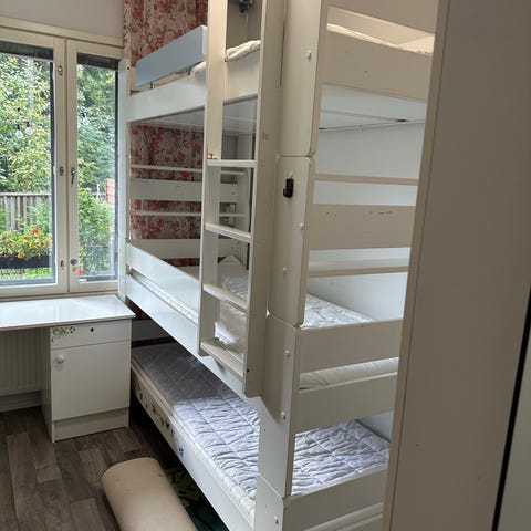 Unipuu kerrossänky valkoinen, 80*200cm kokoisille patjoille (patjat ei sisälly kauppaan). Sängyssä on tikkaat sivussa sekä turvalaidat. Materiaalina maalattu puu, väri valkoinen.