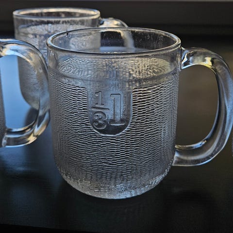 Kirkasta lasia, jossa teksturoidut pinnat.