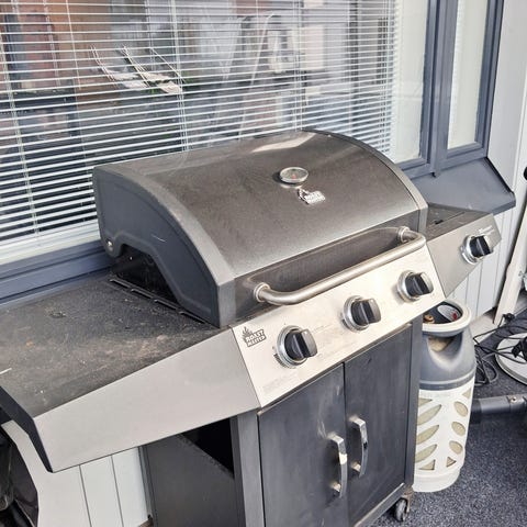 BBQ King kaasusavustin ulkokäyttöön. Musta, pystymallinen savustin, jossa useita ritilätasoja eri ruokien samanaikaiseen kypsentämiseen. Etuosassa lämpömittari kannessa lämpötilan seuraamiseen ja alaosassa kaasupoltin säätimellä. Soveltuu lihan, kalan ja muiden ruokien savustamiseen ja kypsentämiseen kaasulla pihalla tai terassilla.Kerran käytetty.Pieni palo jälki toisessa kyljessä.