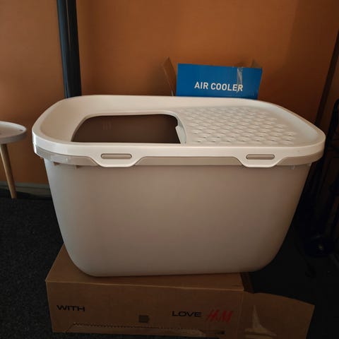 Savic Nestor kissanvessa, väri harmaa-valkoinen, mitat 56x39x38,5 cm. Suljettu malli läpinäkyvällä heiluriovella ja yläosan ilmanvaihtoaukoilla. Sopii kissanhiekan käyttöön sisätiloissa. Yläosa on irrotettavissa puhdistusta varten kiinnitysklipsien avulla.