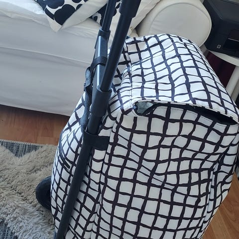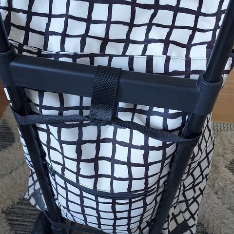 Vanha, siisti, vedettävä ostoskärry. Laukun irrottamalla voit käyttää myös muuten tavaroiden siirtelyyn.
