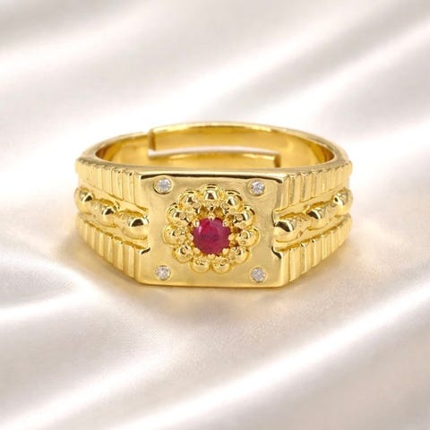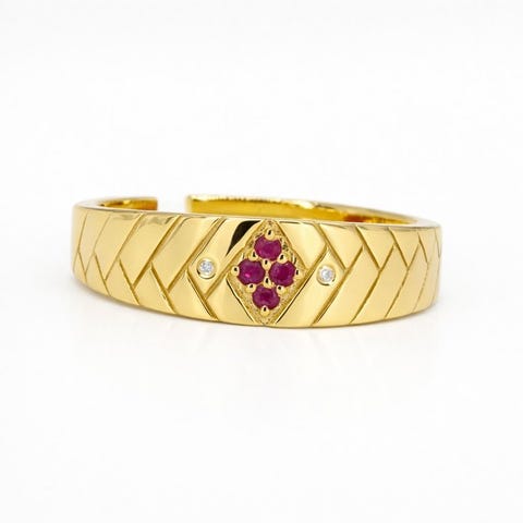 Sormus Kultasilattu Rubiini - Timantti - 18K kultattu