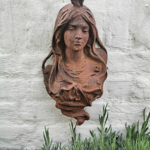 Upea seinäkonsoli Art Nouveau -tyylillä, kaunis ilmeikäs nainen. Veistos esittää kauniin yksityiskohdan. Se on upeassa vintage-tilassa, ruostepatina. Sen paino on yhteensä noin 9 kilogrammaa. Mitat ovat seuraavat (+/-):Korkeus: 33 cmLeveys: 24 cmKaikki tuotteemme lähetetään hyvin pakattuna ja vakuutettuna.