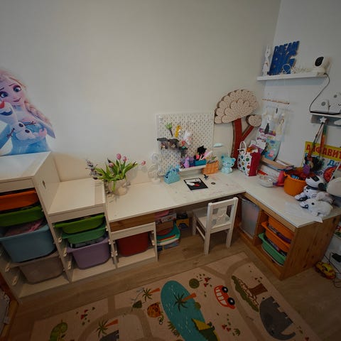 IKEA lastenhylly musta. Hyllyssä useita lokeroita lelujen, kirjojen tai muiden lasten tavaroiden säilytykseen. Sopii lastenhuoneeseen tai muuhun tilaan, jossa tarvitaan avointa säilytystilaa. Materiaali on todennäköisesti puupohjainen levy, pinta musta.