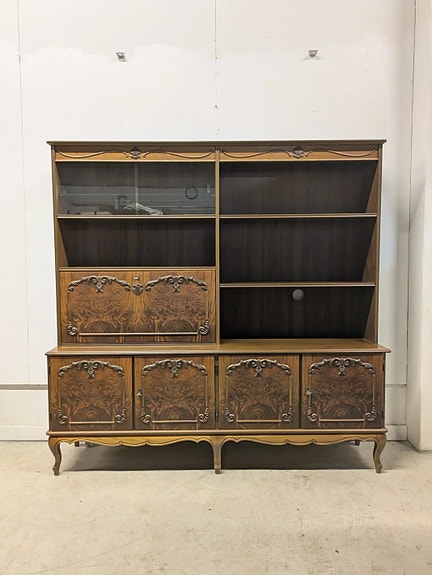 Kuvan upea ja laadukas Hepplewhite vitriini myytävänä. Kunto hyvä. Yläosa pois nostettava. Avaimet tallessa. Vasemman yläoven lukko korjattu, avain ei poistu lukitus asennossa. Muut lukot toimivat normaalisti. Sisällä kaksi lasihyllyä, jotka korkeussäädettävissä. Sisusta siisti eikä ole hajuja.