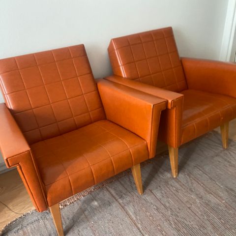 Hienot 40-luvun luvun kerni-nojatuolit etsivät uutta kotia. Nahat erittäin hyvässä kunnossa ikäisekseen. Ei rikkoja. Puuosissa ajan tuomaa patinaa. Rungot ja istuimet kunnossa. Myydään parina.