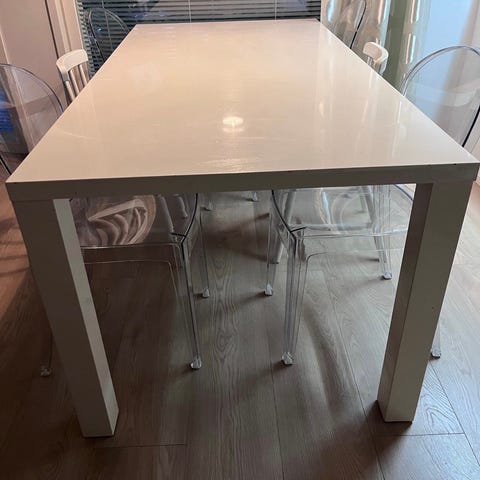 Käytössä ollut, mutta erittäin hyväkuntoinen! Myydään yhdessä tuolien kanssa tai erikseen🫶🏻 (pöytäryhmästä löytyy erikseen ilmoitus)