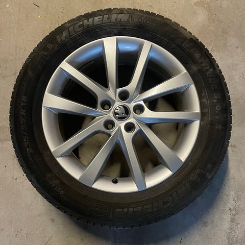 Tästä siisti Skodan kesärengassarja, jossa alkuperäiset Skodan alumiinivanteet ja renkaina Pirellin 235/55/18 kesärenkaat. Vanteet siistissä kunnossa, suorat ei täristä. Sopivat moneen Skodaan sekä Vag autoihin (audi, skoda, volkswagen, seat).