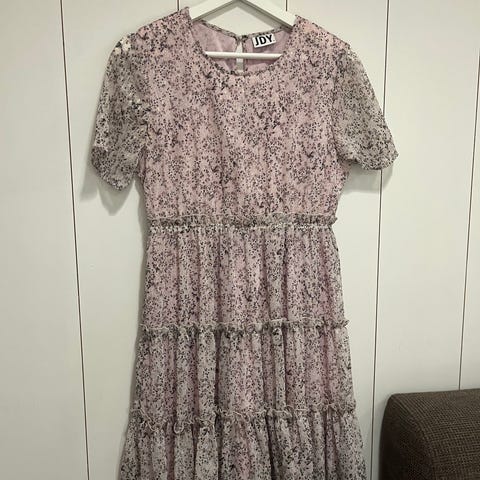 Ivana Helsinki kesämekko naisille. Koko 34 (valmistajan merkintä 34–36). Materiaali viskoosia. Mekossa on vaaleanpunainen pohjaväri ja oranssi voikukkakuviointi. Mallissa on väljät, hieman levenevät hihat ja vyötäröllä solmittava nauha, jolla istuvuutta voi säätää. Sopii käytettäväksi esimerkiksi kesämekoksi arkeen tai juhlaan.