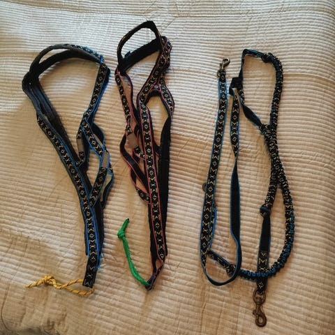 Muutaman kerran käytetyt lasten pulkan vedossa. Käsin teetetyt ammattilaisella, sirolla saksanpaimenkoiralla ollut. Sopii ahkion vetoon jne. Vain nouto Pudasjärveltä.