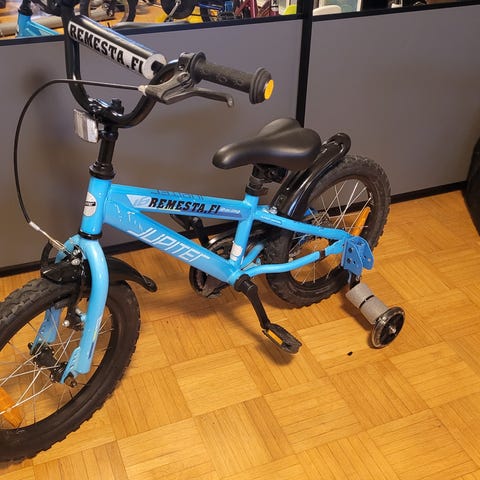 Lasten ultrakevyt polkupyörä 16" renkailla. Runkoväri on sininen ja pyörässä on etu- ja takajarrut sekä lokasuojat. Sopii arjen ajoon ja pyöräilyn harjoitteluun lapsille, joille 16"-kokoinen pyörä on sopiva.
