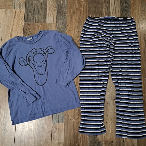 Lasten pyjama setti koko 128/134 pitkähihainen paita ja housut tummanharmaa