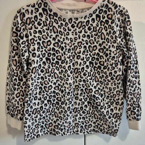 Lasten pyjama setti, koko 128. Settiin kuuluu pitkähihainen t-paita ja pitkät housut. Paita on tummanharmaa, edessä teksti "this girl needs more sleep!" vaaleanpunaisilla, valkoisilla ja turkooseilla kirjaimilla. Housut ovat tummanharmaat, joissa on hillitty kuviointi. Pyjama sopii lapselle yökäyttöön tai kotiasuksi.