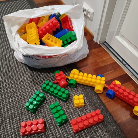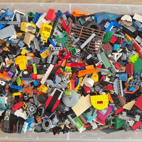 Myynnissä kasa legoja.