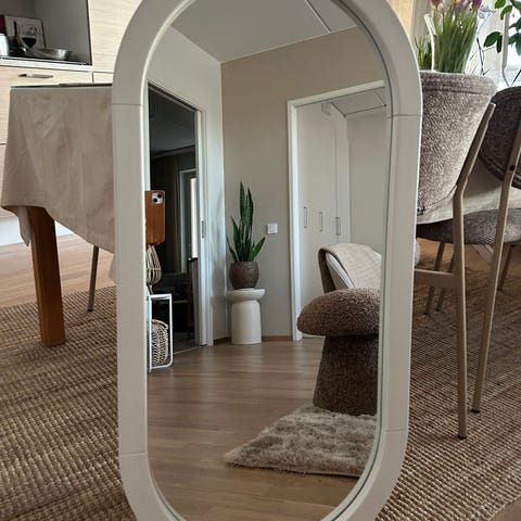 Tuollainen kiva peili pyörinyt nurkissa pitkään. Toinen puolikas on toiminut sohvapöydän päälisenä jolloin vahingossa lohkaisin pienen palan nurkasta.