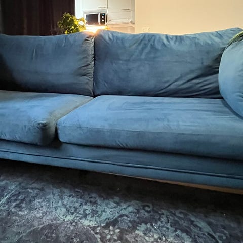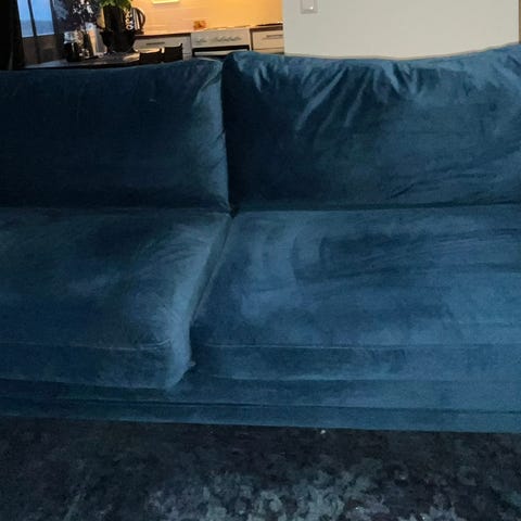 Myydään 6v vanha Ellokselta aikoinaan ostettu sininen Larissa samettisohva. Ei enää uutta vastaava, mutta edelleen ehjä ja siisti. Natisee välillä istuessa, mutta jalkojen kiristys varmaan auttaisi (ei olla jaksettu koittaa). Väri näkyy parhaiten viimeisissä kuvissa. Koiratalous.