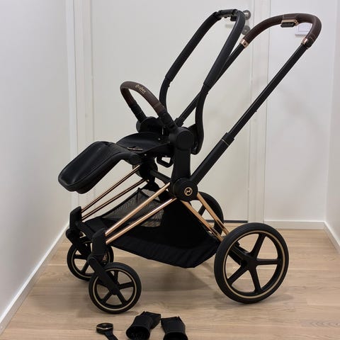 Cybex ePriam 4 vm. 2025 yhdistelmävaunut rosegold rungolla ja Cozy beige kankailla. Runko ostettu 07/2025 ja kangas + vaunukoppa keväällä 2025, kaikki uutena. Ratasosan kangas otettu käyttöön aiemmin normi Priameissa, vaunukoppa ja ePriam runko otettu käyttöön 11/2025. Itse ratasosa uusi ja käyttämätön. Sähköavustusta käytetty todella vähän, sillä meillä ei ole tälle juurikaan ollut tarvetta. Kankaat sekä runko erinomaisessa kunnossa, kaikki kankaat tahrattomia. Ainoa moite tavarakorissa näkyvä tahra joka tullut kun jarrua käytetty. Kaikki toimii niin kuin kuuluukin. Takuuta jäljellä.