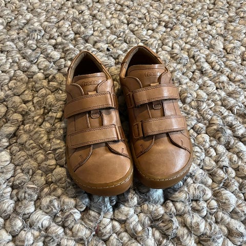 Reima lasten paljasjalkakengät, koko 35. Väri ruskea, unisex-malli. Kengissä on nauhakiinnitys pikakiristimellä ja nilkkaa suojaava varsi. Pohja on kuvioitu pidon parantamiseksi. Soveltuvat arki- ja ulkoilukäyttöön lapsille. Tosi kätevä kiristys! Olivat käytössä yhden syksyn yhdellä lapsella, ja nyt jo jäivät pieneksi.