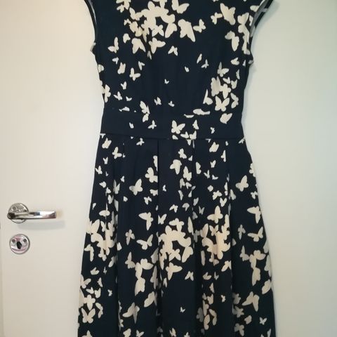 Kokomerkintä 42 / UK14, mutta todella, todella pientä kokoa, katso mitat! Sopiva 36-38 kokoiselle (S-M), miksei myös n. 40 jos vain pitää tiukemmin istuvasta mekosta. Ei missään nimessä ole suuri 36-kokoisellekaan ja sen kokoisena olen tätä pari kertaa käyttänyt.