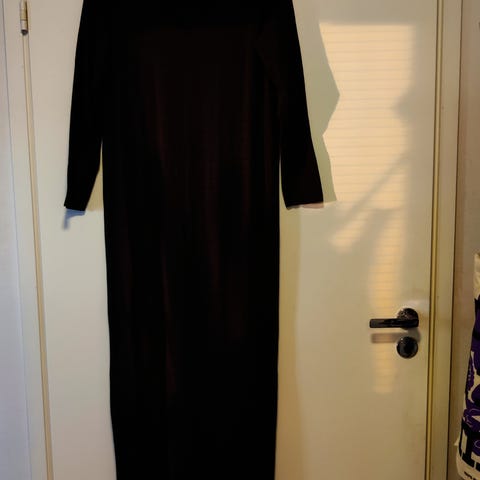 Myydään monikäyttöinen brittiläisen Reiss-merkin laadukas pitkähihainen neulemekko. Polvimittainen, olalta helmaan piparkakkureunaisia kaistaleita ja hihat hieman ohuempaa läpikuultavaa neulosta. Materiaali pääosin viskoosia, todella imarteleva ja mukava päällä.