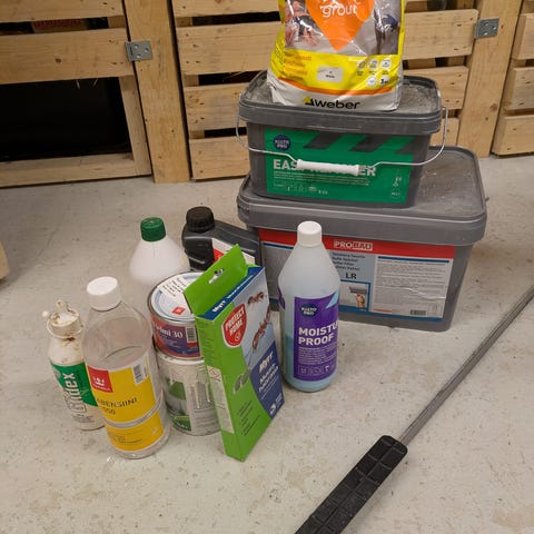 Annetaan vanha metallinen käsijohde. Pituus noin 3 metriä. Kolme kiinnikekohtaa.