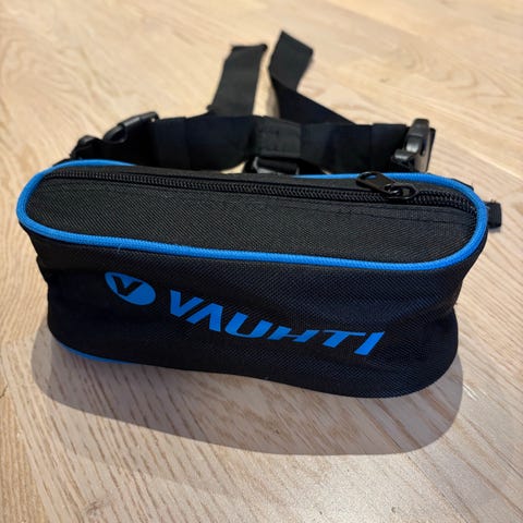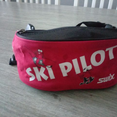 Swix Ski Pilot lasketteluvaljaat7. Punainen vyölaukku, jossa sisällä valjaat ohjaavan aikuisen käyttöön. Valjaat on helppo pukea lapselle ja mukavat päällä. Sopii todella hyvin, kun et halua laskea lapsen perässä syksyllä.