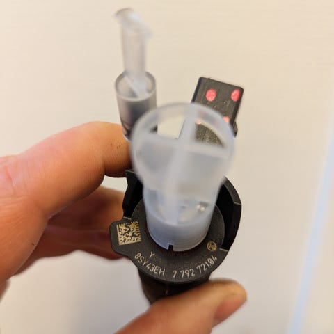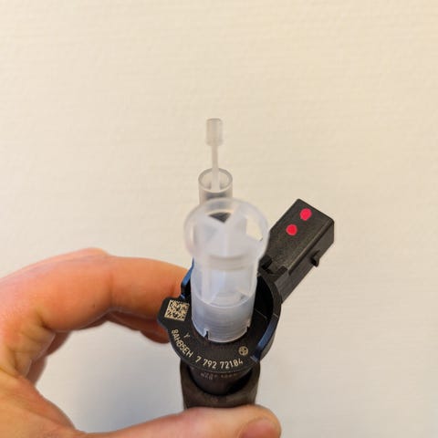 Testattu ja todettu piezoelementti vialliseksi. Ei voi korjata, mutta myydään esim runkopantiksi. Passaa runkopanttina sekä x30d, että x35d suuttimille.