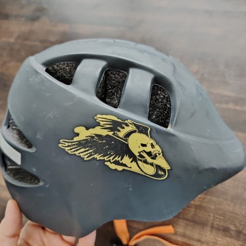 Ehyt kypärä, kissankorvat vähän rutussa.