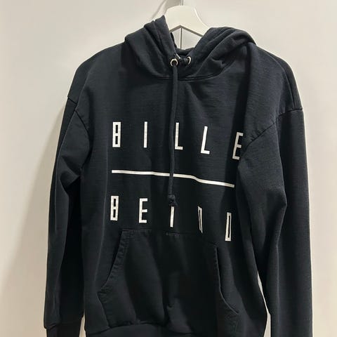 Billebeino huppari miehille. Koko XS. Väri musta, edessä punainen Billebeino-logo ja raitakuviot. Materiaali puuvilla. Hupullinen malli, jossa kiristysnyörit ja suuri kengurutasku edessä. Selkäpuoli yksivärinen musta. Soveltuu arkikäyttöön ja vapaa-aikaan.