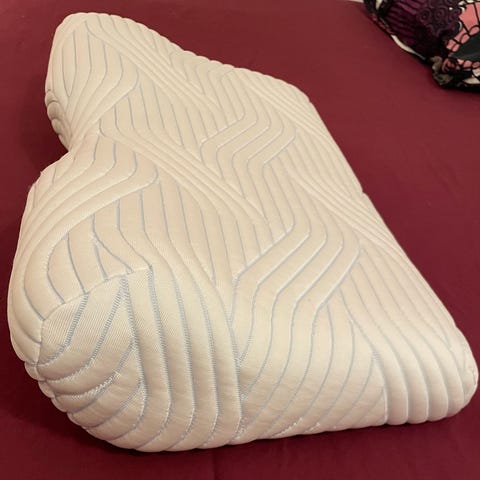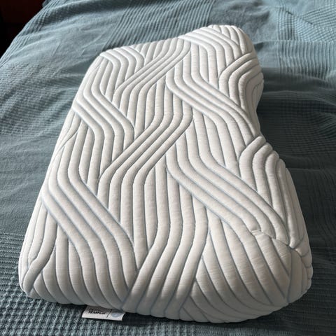 Tempur ErgoPlus SmartCool -tyyny. Hyvin vähän käytetty, koska osoittautui itselleni liian korkeaksi. Tämä malli soveltuu selällään tai kylkiasennossa nukkujalle. Päällinen on irrotettava ja vesipestävä. Hinta ostettaessa oli 139€.