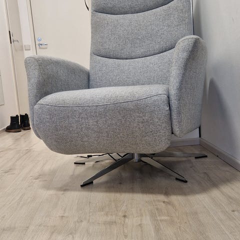 Hjort Knudsenin Comfortera sähkösäätöinen nojatuoli mustalla nahkaverhoilulla. Tuolissa on korkea selkänoja ja leveät käsinojat. Istuinosan ja jalkatuen asentoja voidaan säätää sähköisesti, hyvin kevyellä kädenliikkeellä, käsinojien alla olevista säätönapeista. Jalusta on pyörivä metalliristikko. Sivupaneeleissa on puuviilu. Siro ja tyylikäs lepotuoli. Sopii olohuoneeseen tai lepotuoliksi esimerkiksi television katseluun tai lukemiseen. Myydään tarpeettomana, ollut käytössä 1/2-vuotta. Edelleen myynnissä kaupoissa 1500 €.