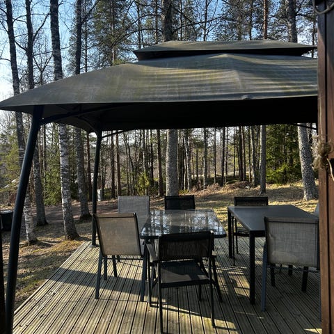 Paviljonki terassille harmaa metallirunko / varattu