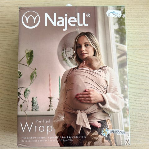 Najell Wrap esisidottu kantoliina koossa S/M. Väri beige. Valmiiksi sidottu kantoliina sujahtaa päälle kuin T‑paita ja antaa perinteisen liinan pehmeän, turvallisen tunteen – ilman monimutkaista säätöä. Suunniteltu vastasyntyneestä noin 1‑vuotiaaksi tai 9 kg asti, se kannustaa ihokosketukseen, joka rauhoittaa, tukee hyvinvointia ja vahvistaa kiintymystä – samalla kun kätesi pysyvät vapaina.