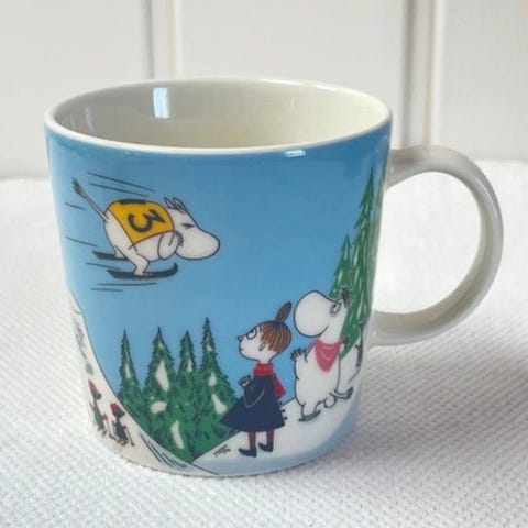 Arabia Muumi muki mäkyhyppy teemalla. Täysin virheetön ja 0,3l. Tarra tallella.